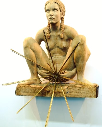 Elisabet Stienstra är en holländsk konstnär som ofta gör kvinnofigurer i trä och metall, i naturlig storlek. Den här heter Virgin of light. Fler bilder här!